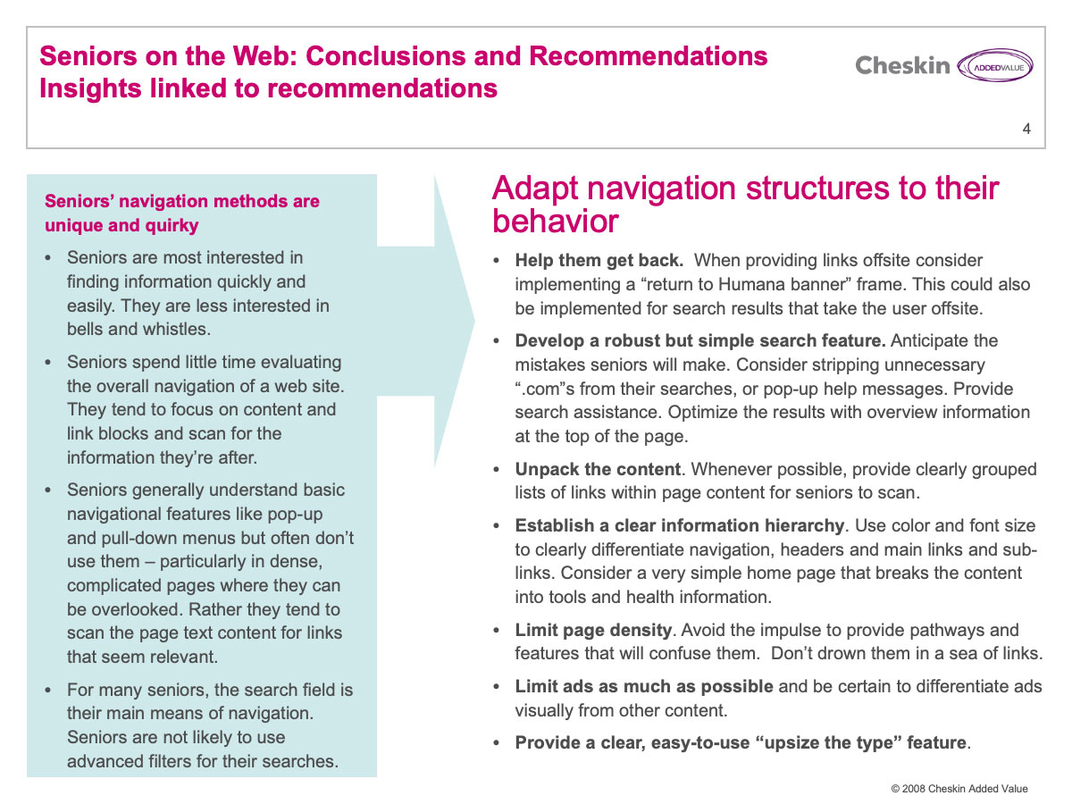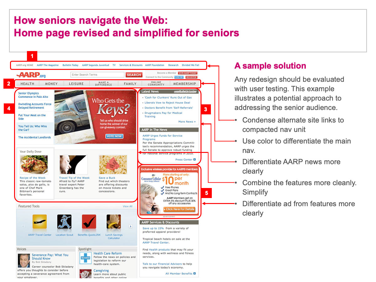 Example Recommendations for Improving a Website Homepage for Seniors