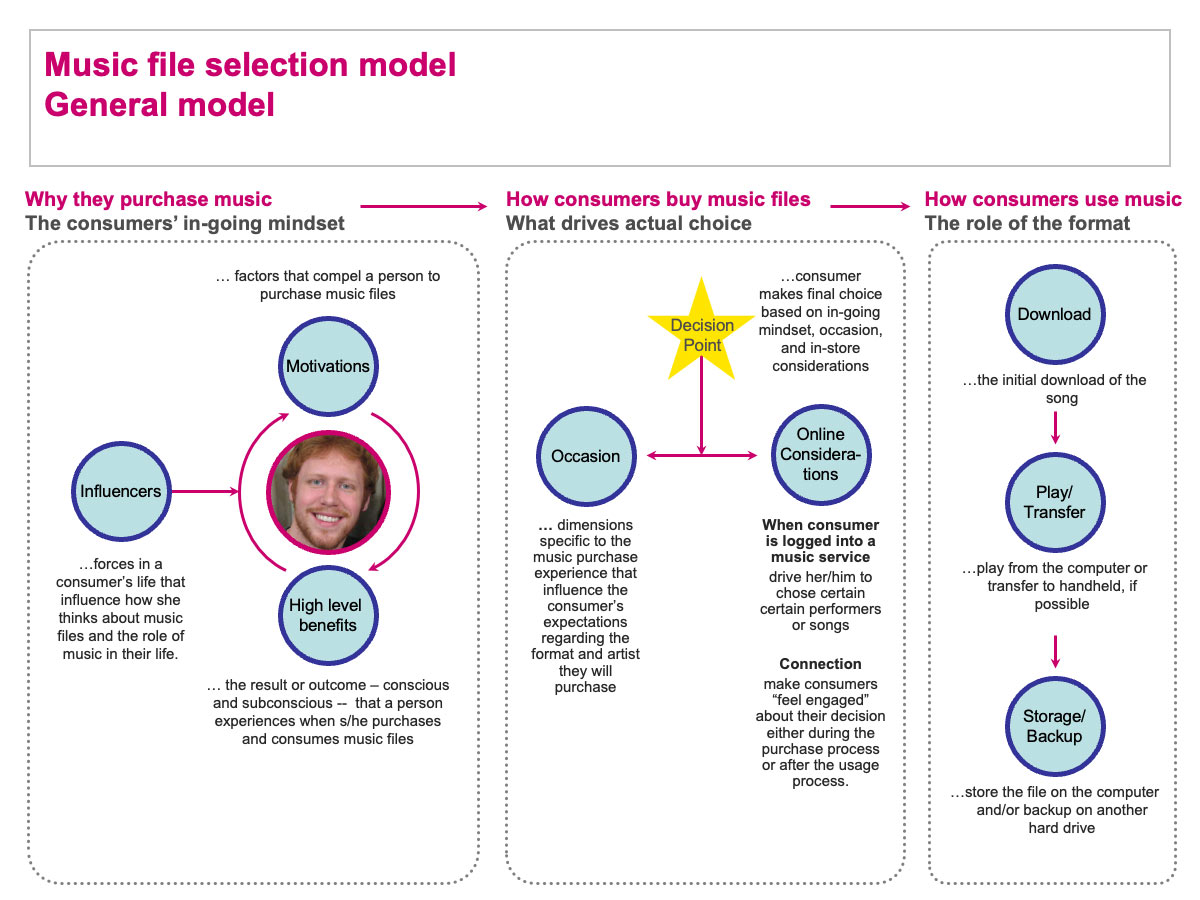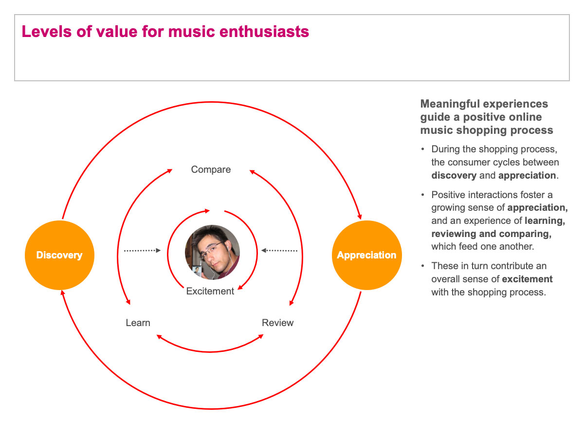 Information graphic model indicating how music enthusiasts experience music