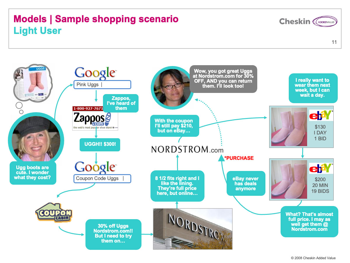 Journey map scenario indicating how Light users experience shopping online
