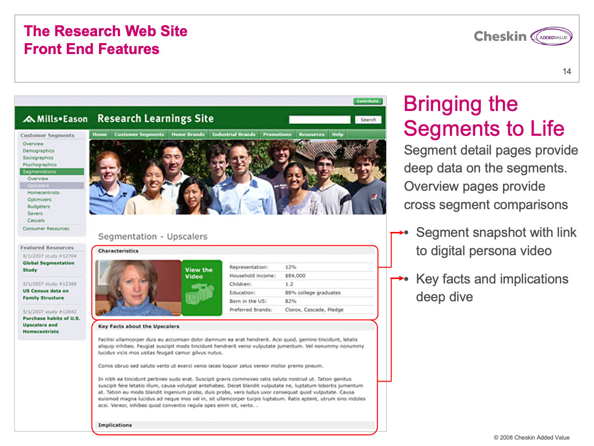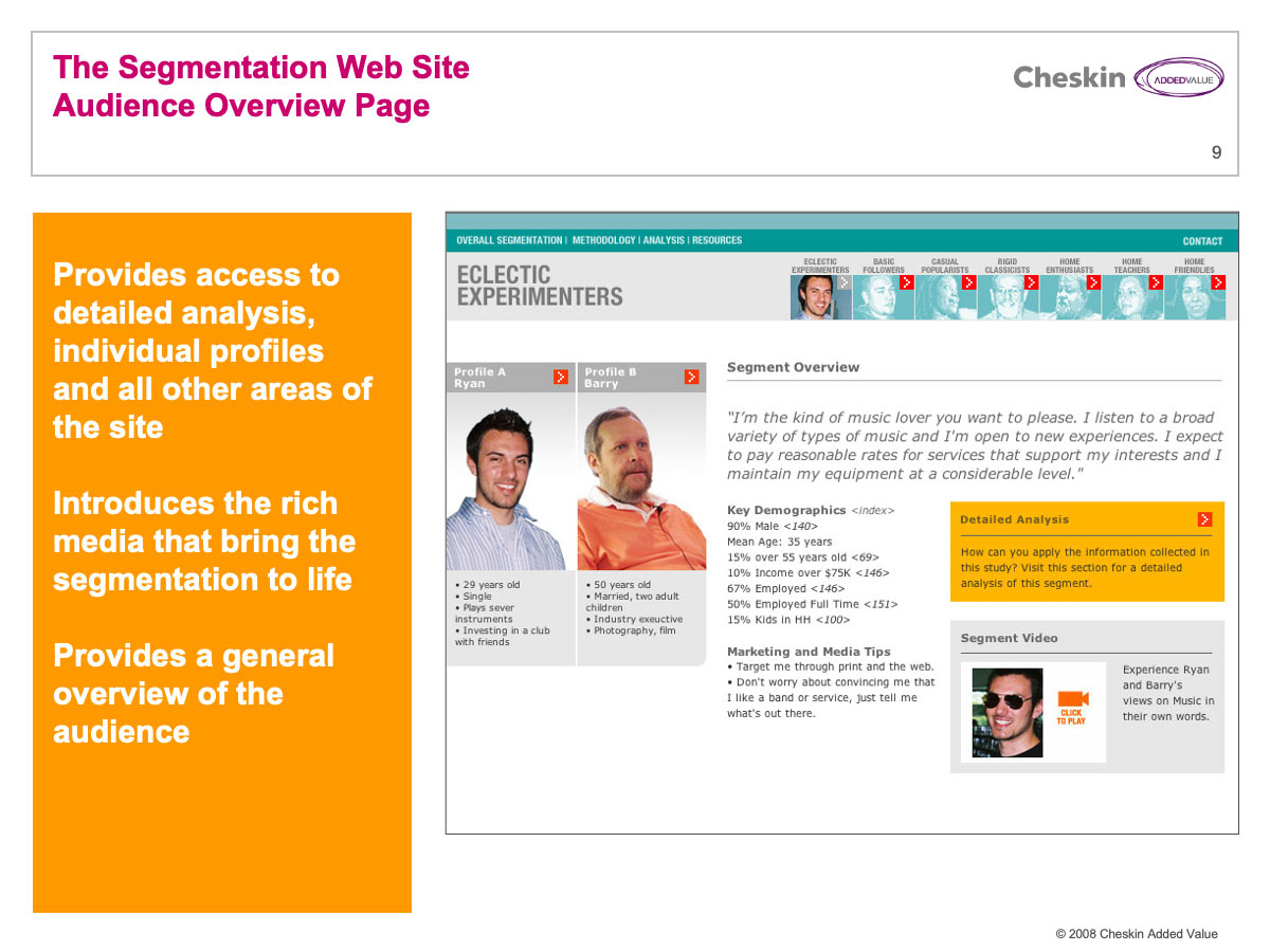 Video is a great storytelling device. Clients often need a compelling means of propogating a new segmentation across an organization. I helped develop many “digital stories” to bring segments to life.