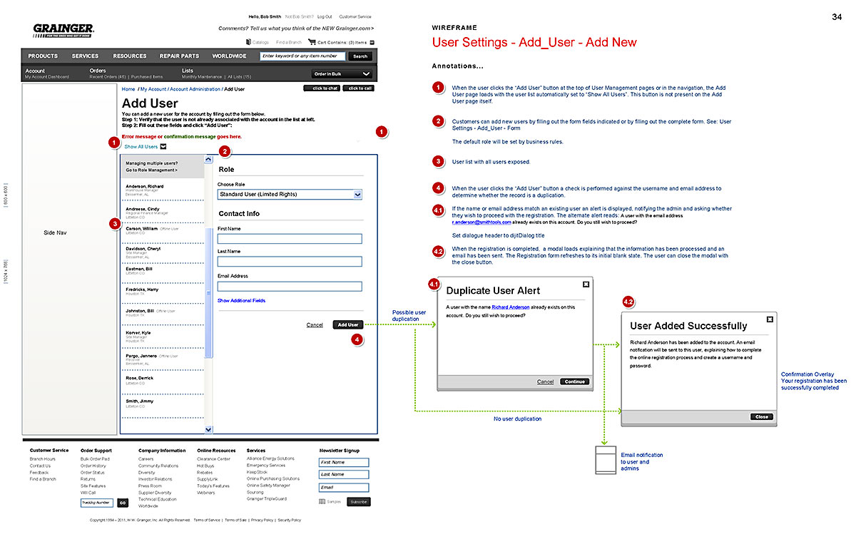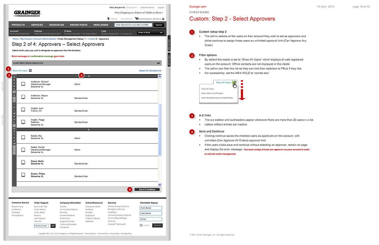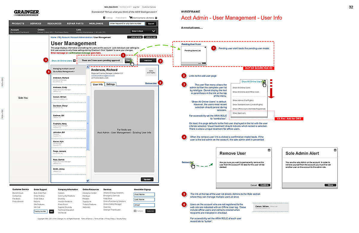 Grainger brought in new digital leadership and tasked them with driving more transactions online. Our first major project was a complete redesign of the primary website. I served as Senior Designer on that project, focusing my efforts on the my account section where I developed tools for our users to manage their multi-user accounts.