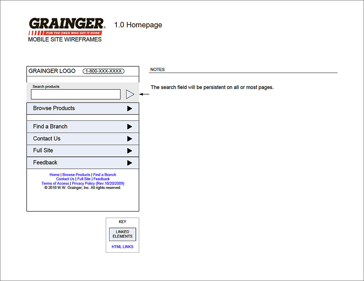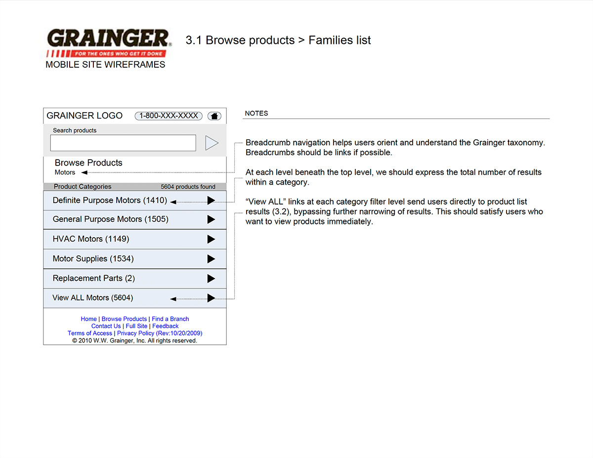 I worked on the User Experience team for Grainger during a pivotal time in the organization, as they looked to drive more and more of their business online. I started as a Senior User Experience designer when the entire team was four designers. Millions of dollars were already flowing through the site. One of my first assignments was to develop a very simple mobile experience to get the site up and running on handhelds.