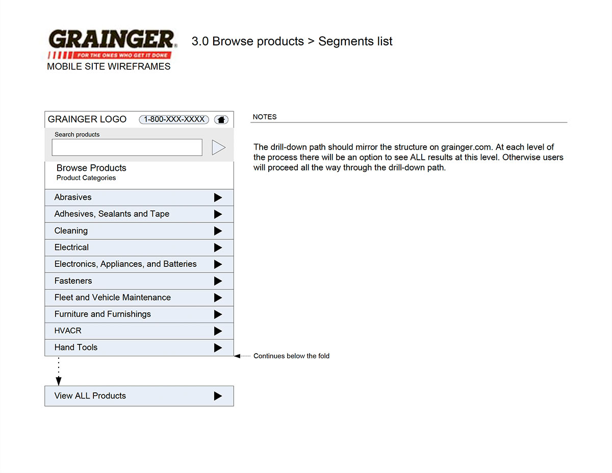 - I was brought onboard as a contract UXA. My first assignment was to develop wireframes and comps for a Grainger.com mobile experience.