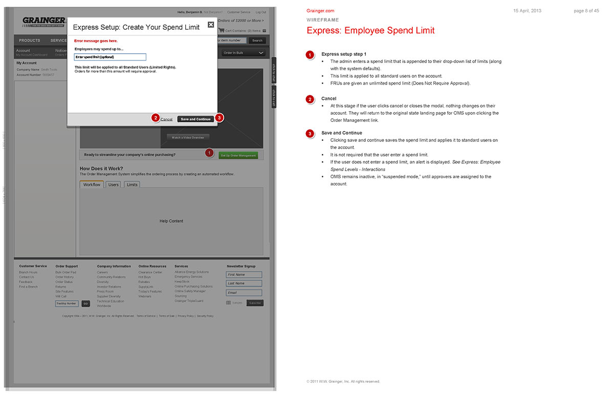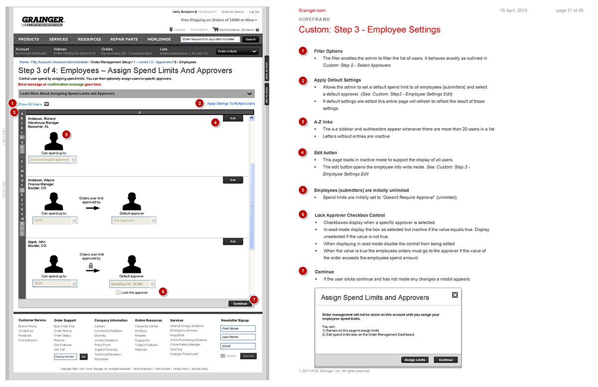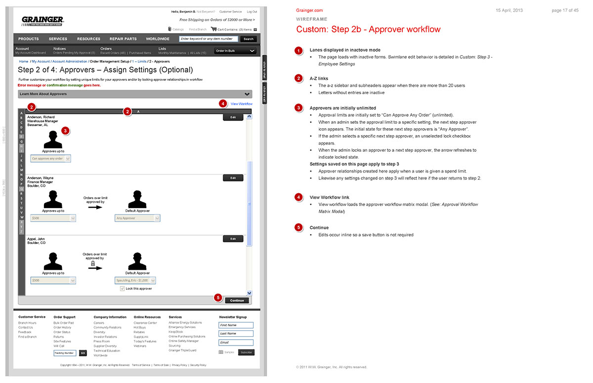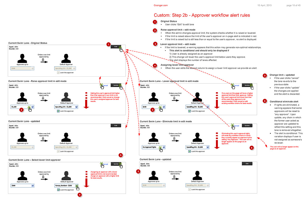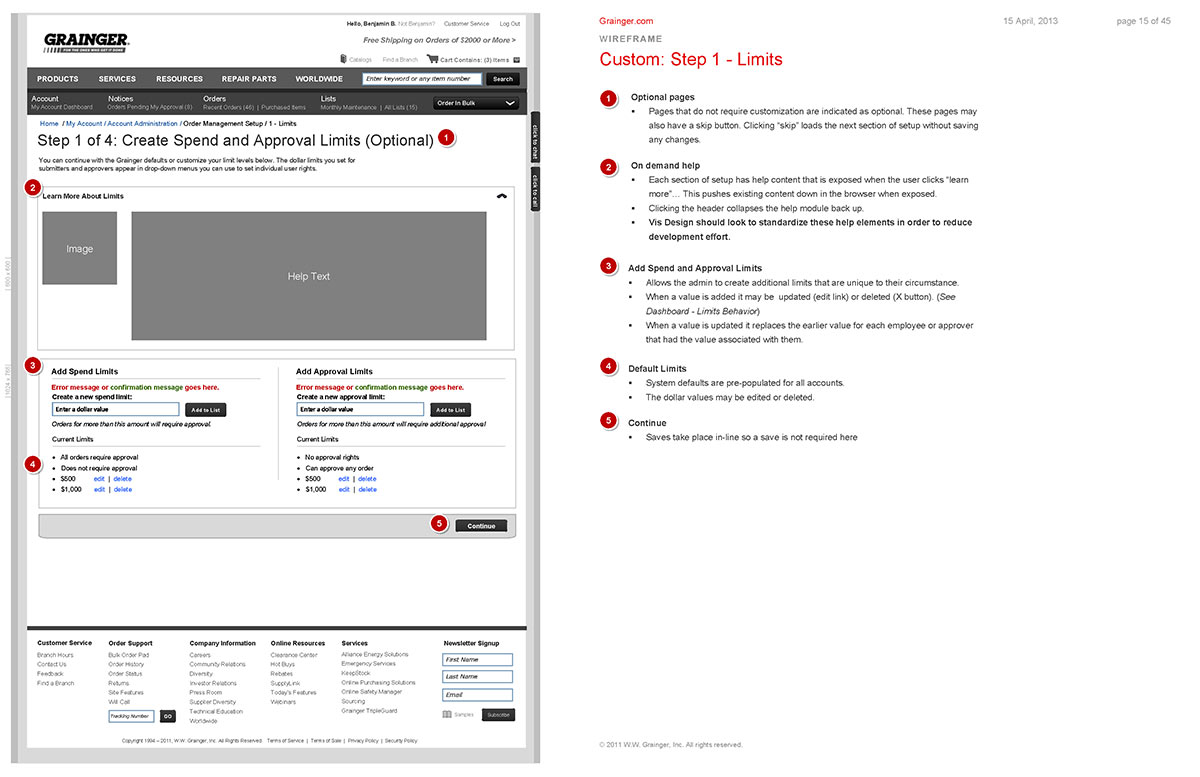 - I led the design of this killer app that allowed our customers to manage spend on their accounts. The tool allowed them to setup submitter-approver workflow chains (multi-levels deep if desired) and a final review stage so every order could be monitored. It also supported locking users to shipping locations and payment methods. The functionality drove over 20% revenue increases on accounts that activated the system.