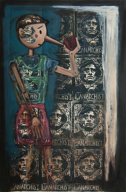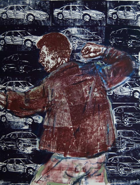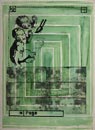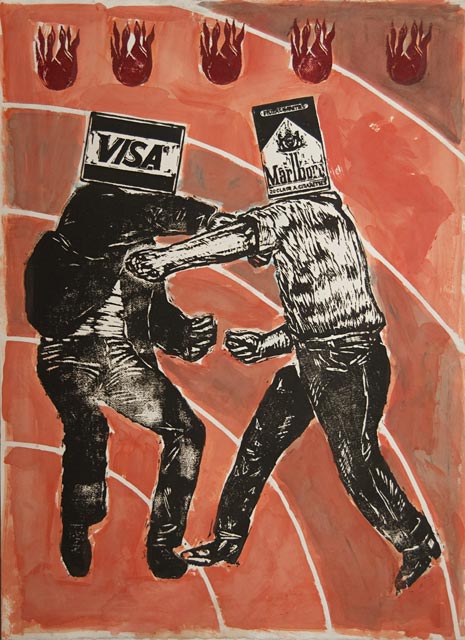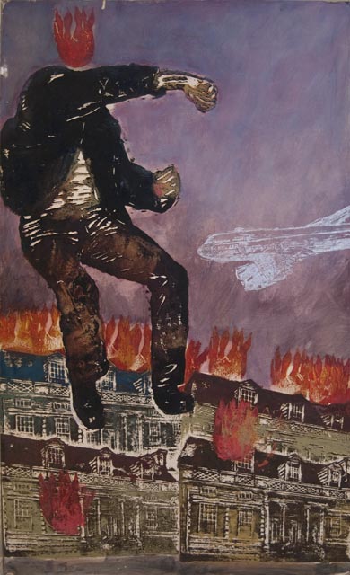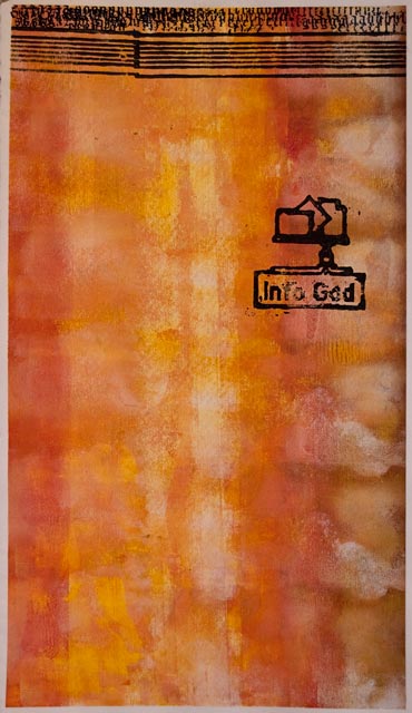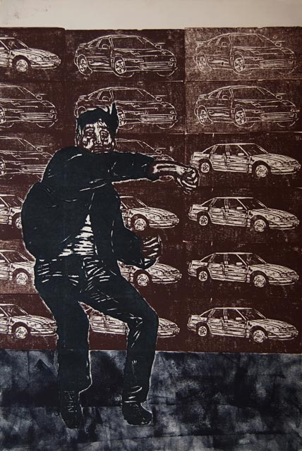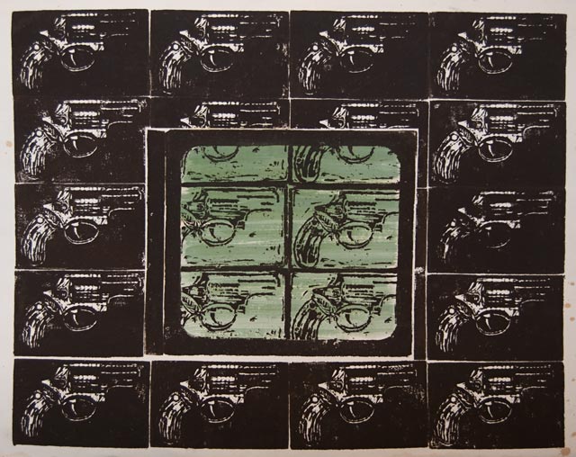 Woodblocks were a means for me to work out some of the conceptual ideas I was having in plastic form. Cutting woodblock icons of the art, literature and ideas I was having let me combine them in all sorts of interesting ways. I amassed a library of these images that allowed me to play out visual ideas spontaneously.