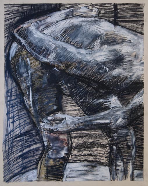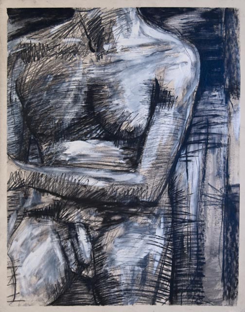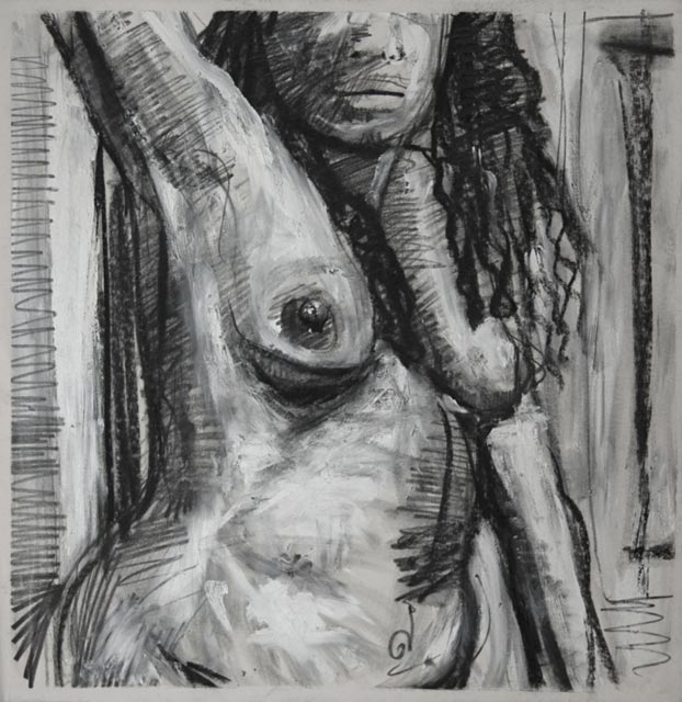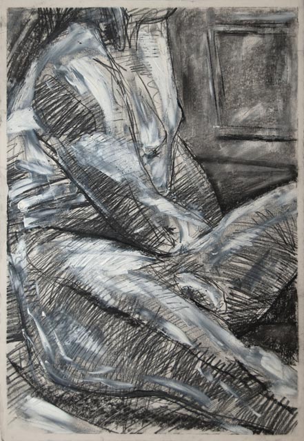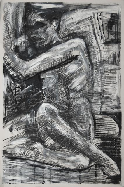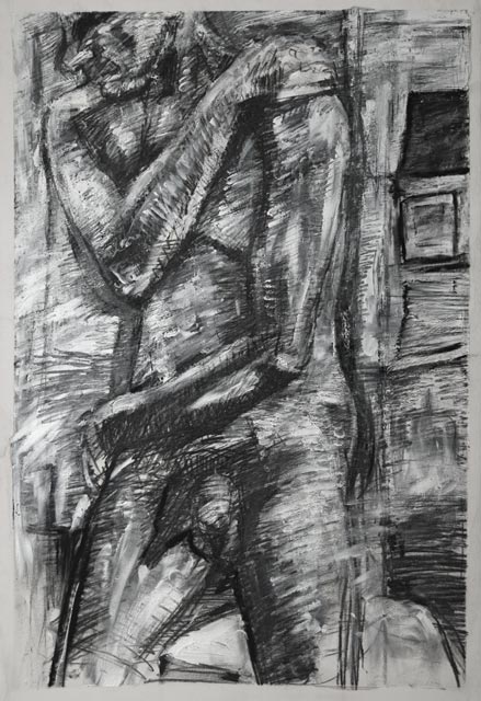 I have a fairly unique life drawing style. It's very frenetic and energetic. I attack the substrate with a variety of tools ranging from charcoal and pencil to erasers and white acrylic paint.
